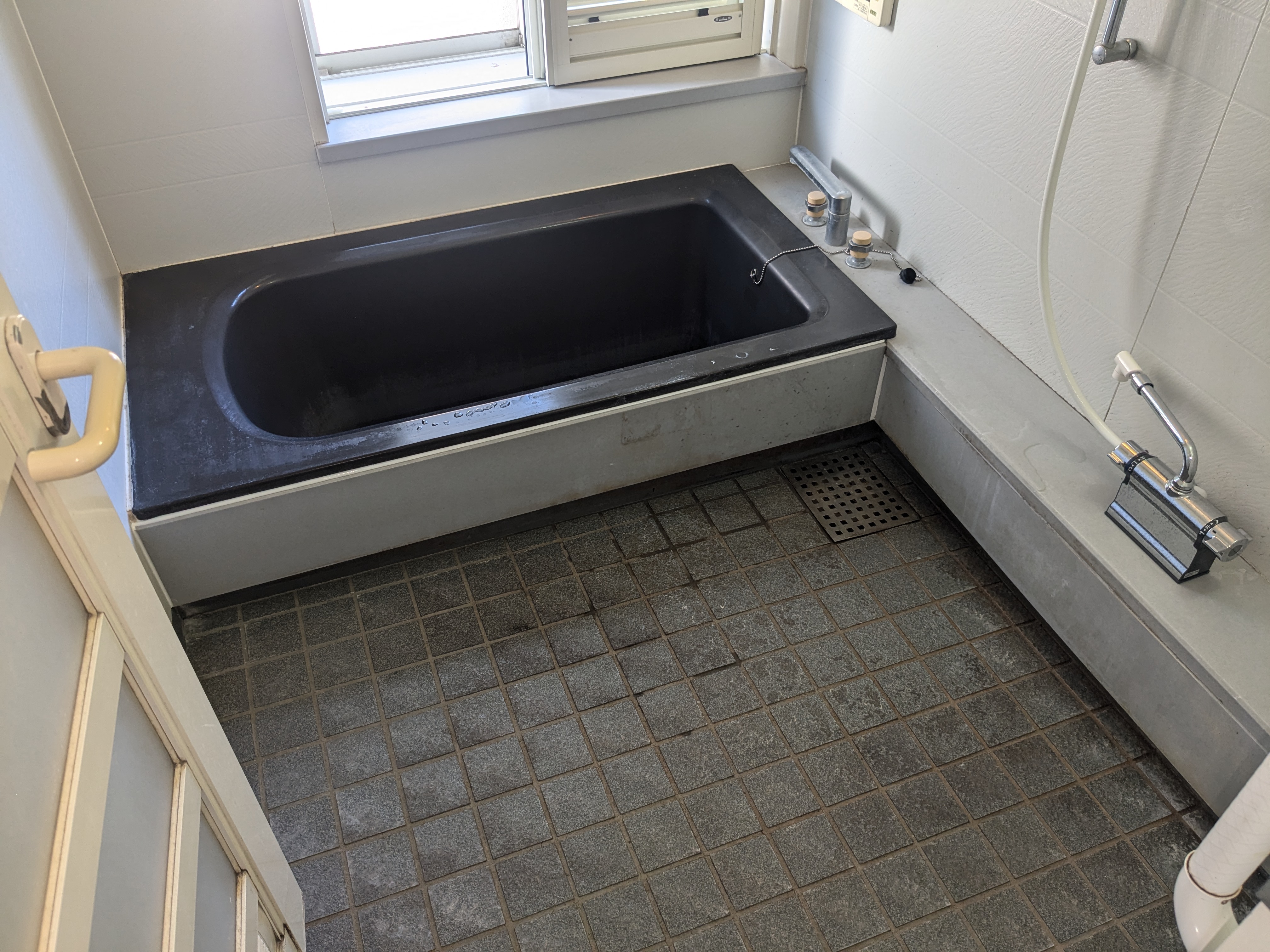 状 況 経年劣化による浴槽のキズ・変色がある。タイルも水垢がひどく、色変えをしたい。